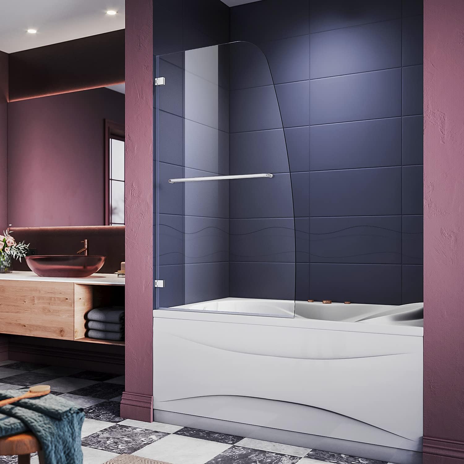 Buy Emke 36 In W X 55 In H Bathtub Shower Door With Towel Bar 14 Clear Tempered Glass Hinged Pivot Framless Stationary Panel Bathtub Screen Chrome Finish Online At