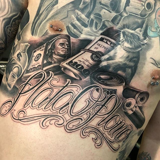 Street City Tattoos On Twitter Freehand Plata O Plomo Script Money Bills And Some Shotgun Shells From Yesterday Still Mor Https T Co Z3fqqdt8hg Https T Co Cdyrdvyfyg Twitter